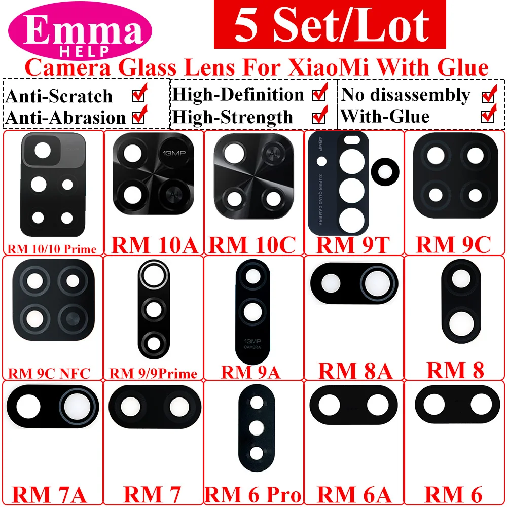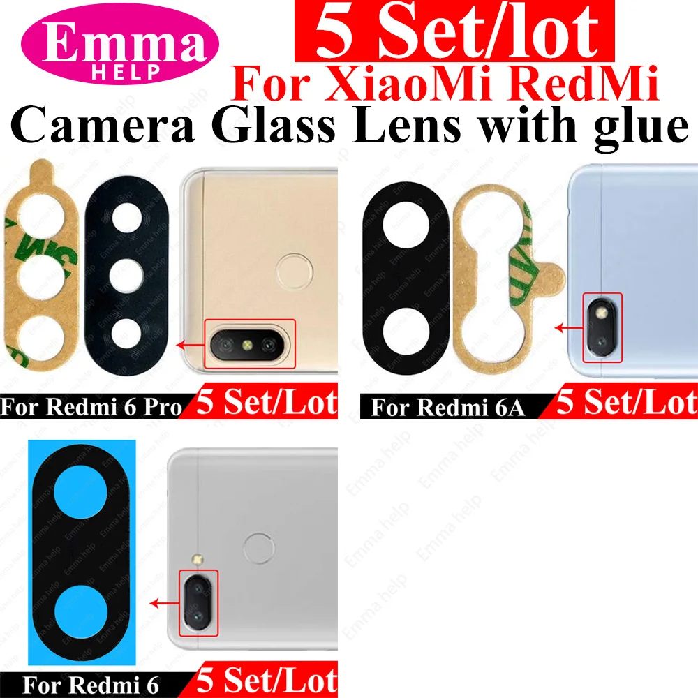 5 set For Back Rear Camera Glass Lens For Xiaomi Redmi With Glue Sticker