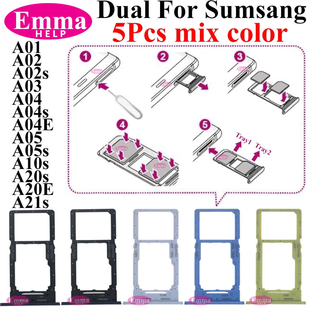 5Pcs Mix Color SIM Card Adapter Drawer For Samsung Sim Card Reader Holder SIM Card Tray Holder Slot A01 A02s A03s A04s A05s A10s A20s A21s