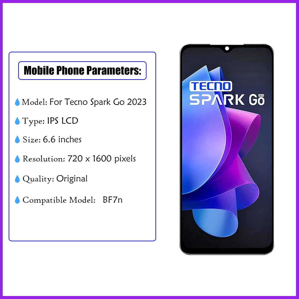 - Compatible Model:For Tecno Spark Go 2023 BF7n LCD