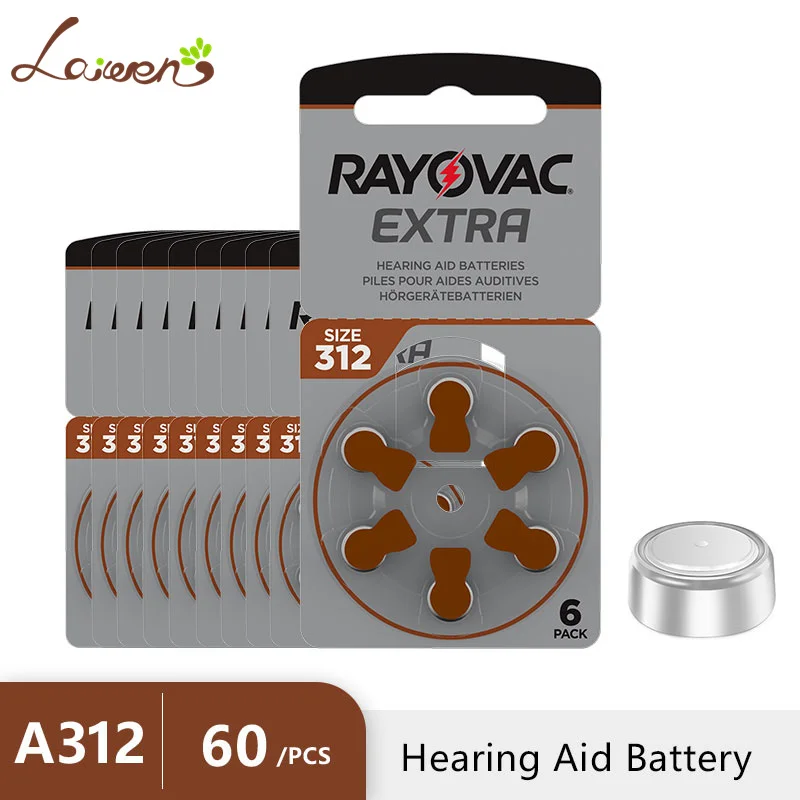 60 PCS Rayovac Extra Performance Hearing Aid Batteries 312 312A .Free Shipping Zinc Air Hearing Aid Battery 312/A312/PR41