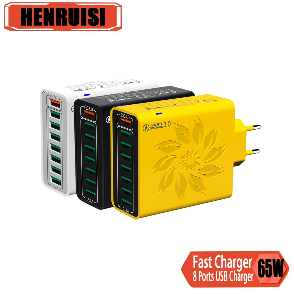 65W 6 Ports USB Charger Fast Charging QC 3.0 Travel Charge Adapter For iPhone 14 Samsung Xiaomi Mobile Phone Adapter EU/US Plug