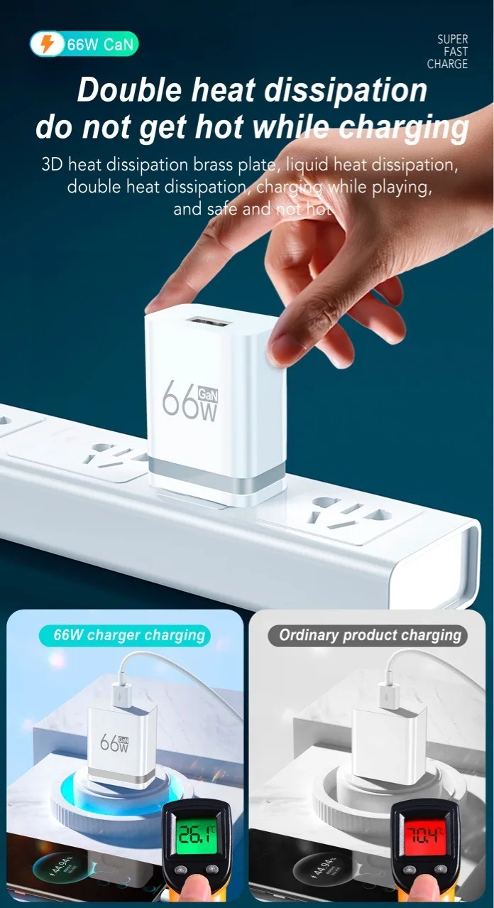 66W USB GaN Fast Charging Portable Mobile Phone Adapter Travel Wall Charger Quick Charge For iPhone 15 14 Pro Max Xiaomi Samsung
