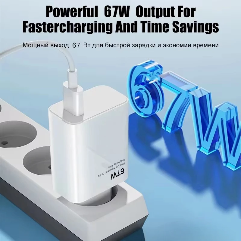 Charging does not correspond to the description: it charges the phone, but there is clearly not 67 W, the size is the same as the original. Cable insulation is made of cheap material: plastic type, not elastic. For such a price is normal, you should not expect the characteristics of the original.