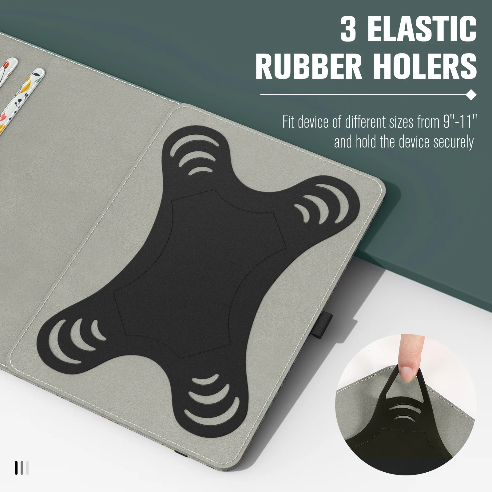 【Pen Holder & Protection】: 10 inch android tablet case with a high-quality elastic strap to fix the front cover to protcet your tablet. The flexible pen holder can help you to carry the stylus pen conveniently and safely.