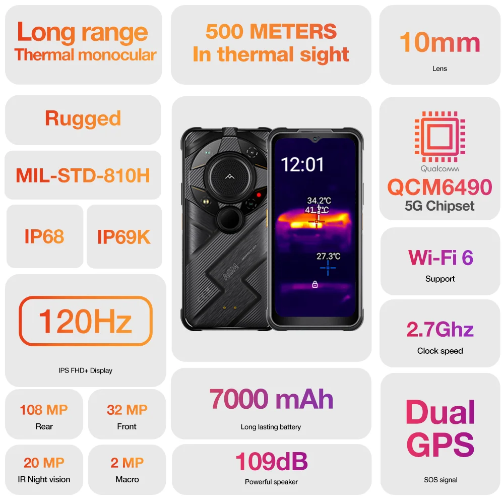 500m/yd Thermal Monocular Long Detection Range that allows users to detect far away heat signatures even through smoke, fog or in total darkness. -10°C to 60°C (-14°F to 140°F)