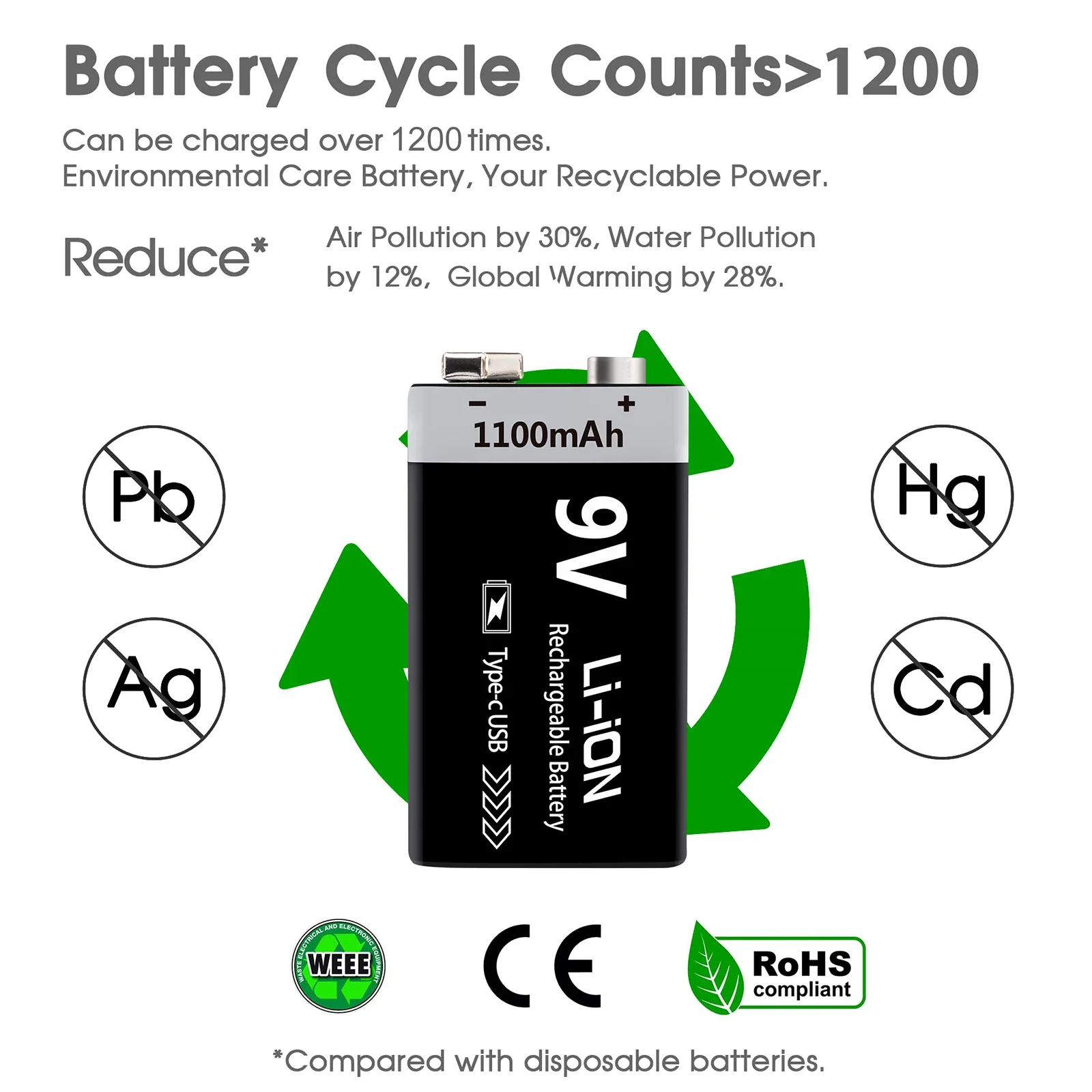 Brand: AIPEKE Model: USB-9V (6F22) Voltage: 9V Capacity: 1100 mAh Chemistry: Li-ion Weight: 28g ± 1g Dimensions: (H x L x W): 47.5L*26W*16.5Hmm±0.5mm **Reliable Performance and Longevity** Experience the reliability and longevity of the AIPEKE USB-9V rechargeable battery, designed to deliver consistent performance over time. With a high-capacity 1100mAh, this battery ensures your devices stay powered for longer without the need for frequent replacements. The advanced li-ion chemistry guarantees a low self-discharge rate, ensuring that your devices are ready to go when you need them most. Whether you're using it for your microphone, remote control, or other power-hungry equipment, this battery is engineered to deliver. **Effortless Charging and Portability** The AIPEKE USB-9V battery is not only powerful but also user-friendly. It features a convenient Type-C charging interface, allowing for quick and easy recharging. The charging indicator light ensures you know when your battery is fully charged, making it a hassle-free experience. Its compact dimensions and lightweight design make it an ideal choice for portability, fitting seamlessly into your gadget bag or pocket. This battery is perfect for those who are always on the move and need a reliable power source for their devices. **Sustainable and Cost-Effective** The AIPEKE USB-9V battery is a sustainable choice for your electronics needs. It saves you hundreds of dollars compared to alkaline batteries, making it an economical investment over time. The battery's ability to charge up to 1200 cycles means it's built to last, reducing waste and saving you money. It's a smart choice for anyone looking to reduce their environmental impact while enjoying the convenience of a rechargeable battery.