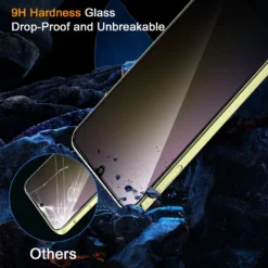 –2 Times Stronger Tempered glass technology + high aluminim material, more anti shocks, temperature variations and bending. Our anti spy peep privacy screen protector glass meets 9H hardness, stronger than other ordinary glass.