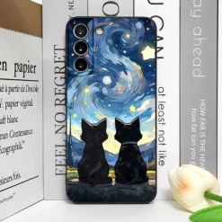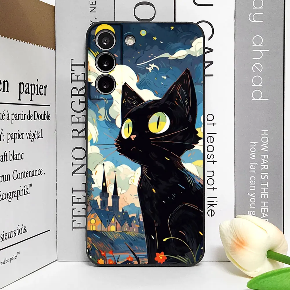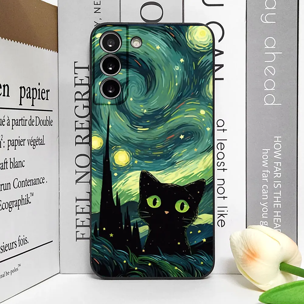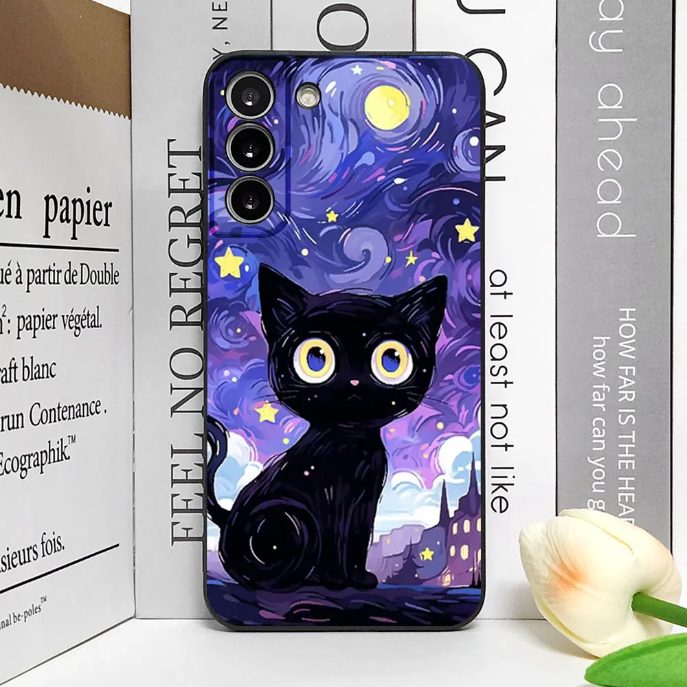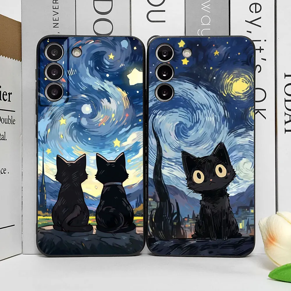 Artistic Black Cat Starry Night Phone Case for Samsung S22 S21 S20 FE Plus Ultra 5G Soft Covers for Samsung Galaxy S23 FE Fundas Skin
