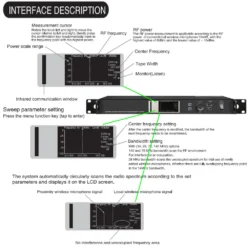 designed for the special frequency band of wireless microphone and a RF signal amplification and distribution system with dual antenna signal receiving circuit. The RF scanning svstem uses a LCD monitoring interface. Through scanning, it can find various existing signals such as similar wireless microphones in similar frequency bands, noise emitted by LED walls, radio and television stations, wireless telephone base station signals and so on.Therefore, it can help to select the frequencies that are not occupied for the use of new wireless microphones.
