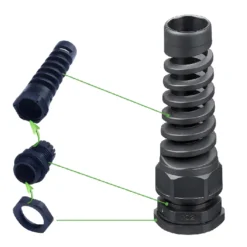 Waterproof PG9 Cable Gland Flex Spiral Strain Relief Protector Black Nylon Plastic Connectors for 4-8mm Dia Wire