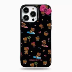 Sanrio Hello Kitty Bow Pink Lepard Print Phone Case For iPhone 16 15 14 13 12 11 Pro Max XR XS MAX 7 8Plus MINI Y2K Laser Cover