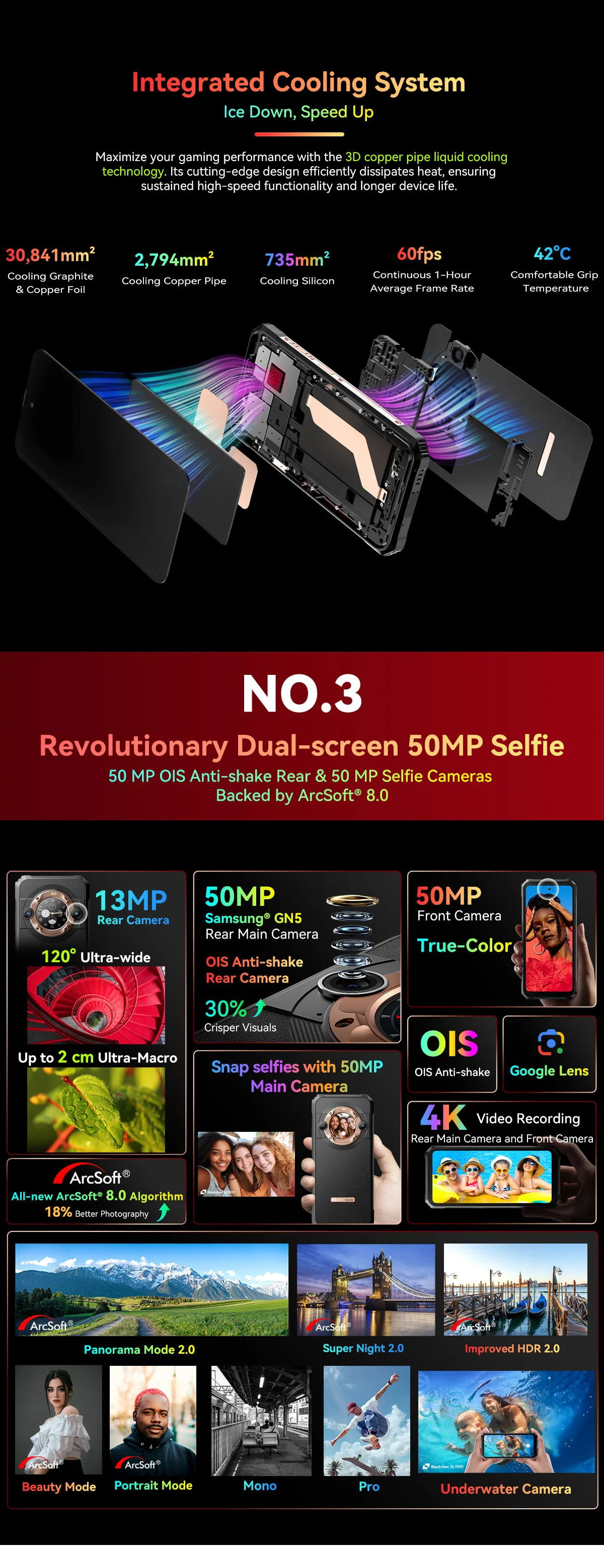 Rear Camera : 50MP+13MP+2MP