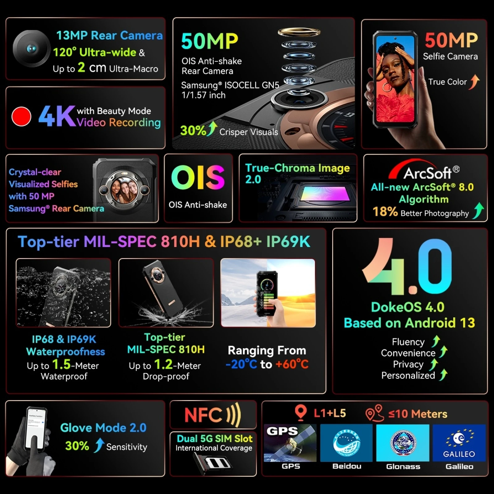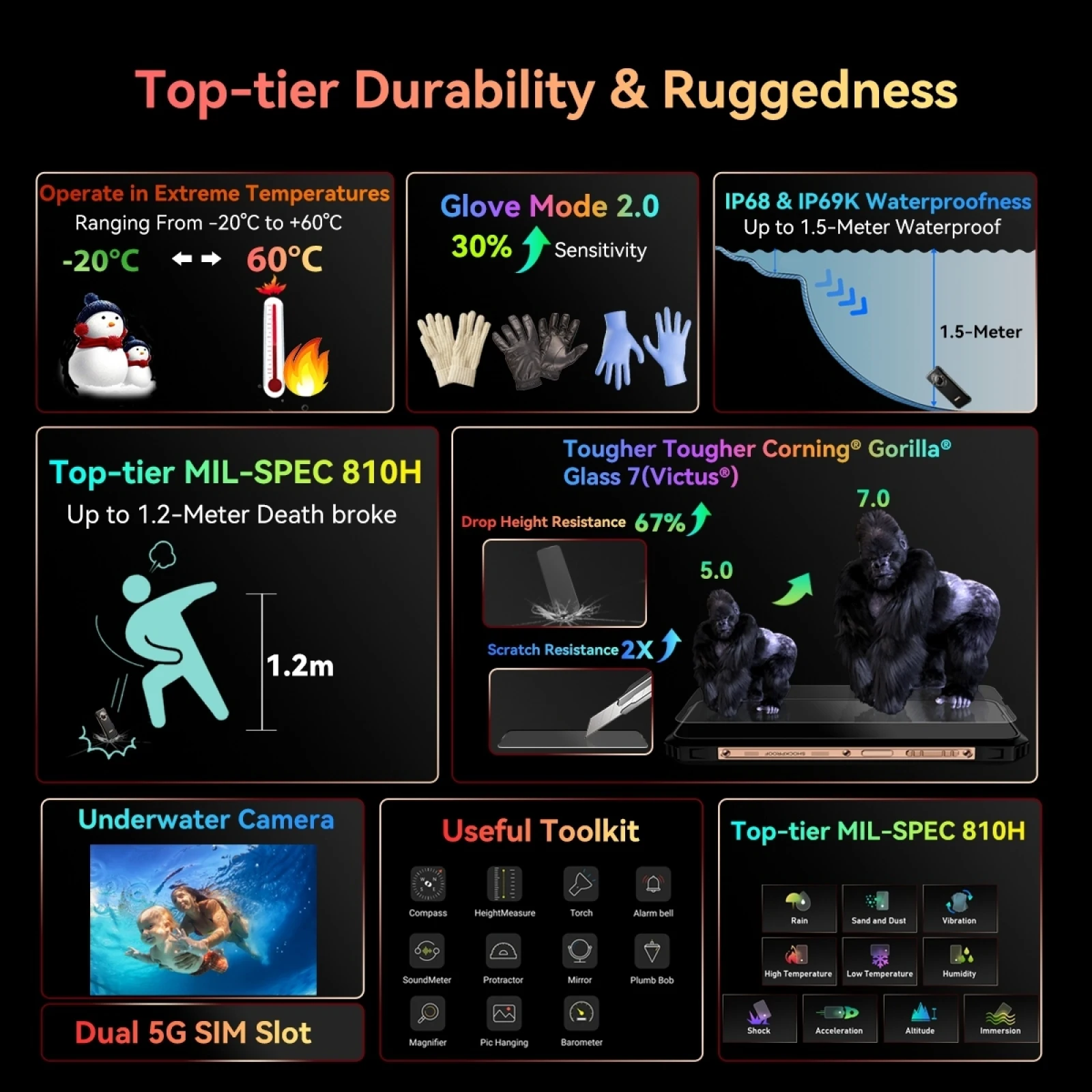 17. Protection: IP68/IP69K / MIL-STD-810H Waterproof Dustproof Shockproof