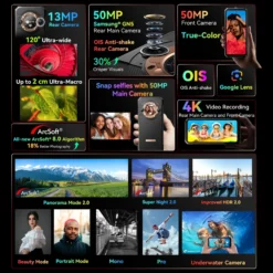 9. Cameras: 50MP main camera + wide angle 13MP rear, 50MP front