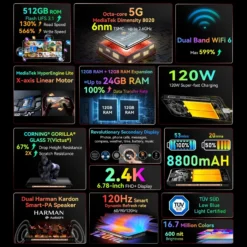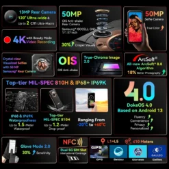 Blackview BL9000 Rugged Phone 12GB+512GB IP68/IP69K 6.78″ 2.4K FHD+ Dual Display 50MP 8800mAh 120W Android 13 5G NFC Smartphone – 509