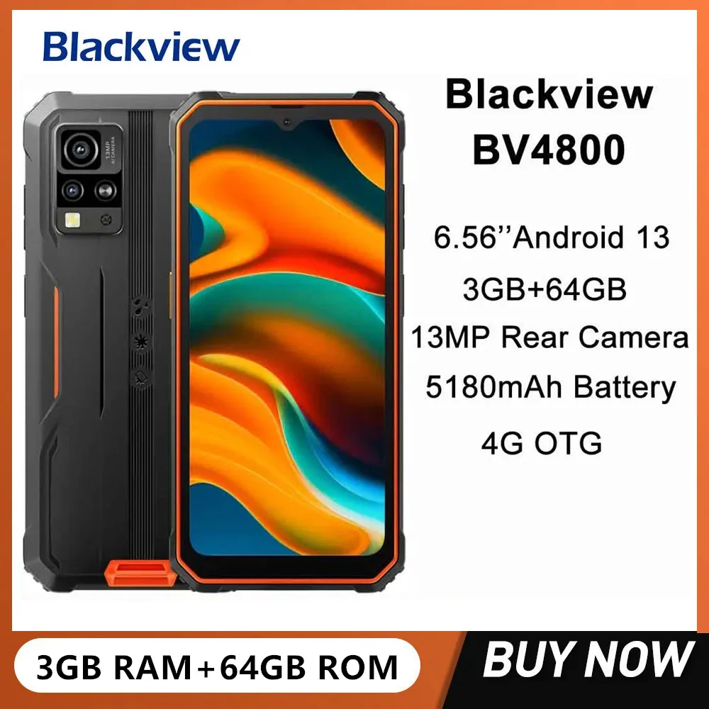 Blackview BV4800 Rugged 4G Smartphones Helio A22 Quad Core 3GB+64GB 5180mAh 6.56Inch Android 13 Mobile Phone 13MP Camera NFC
