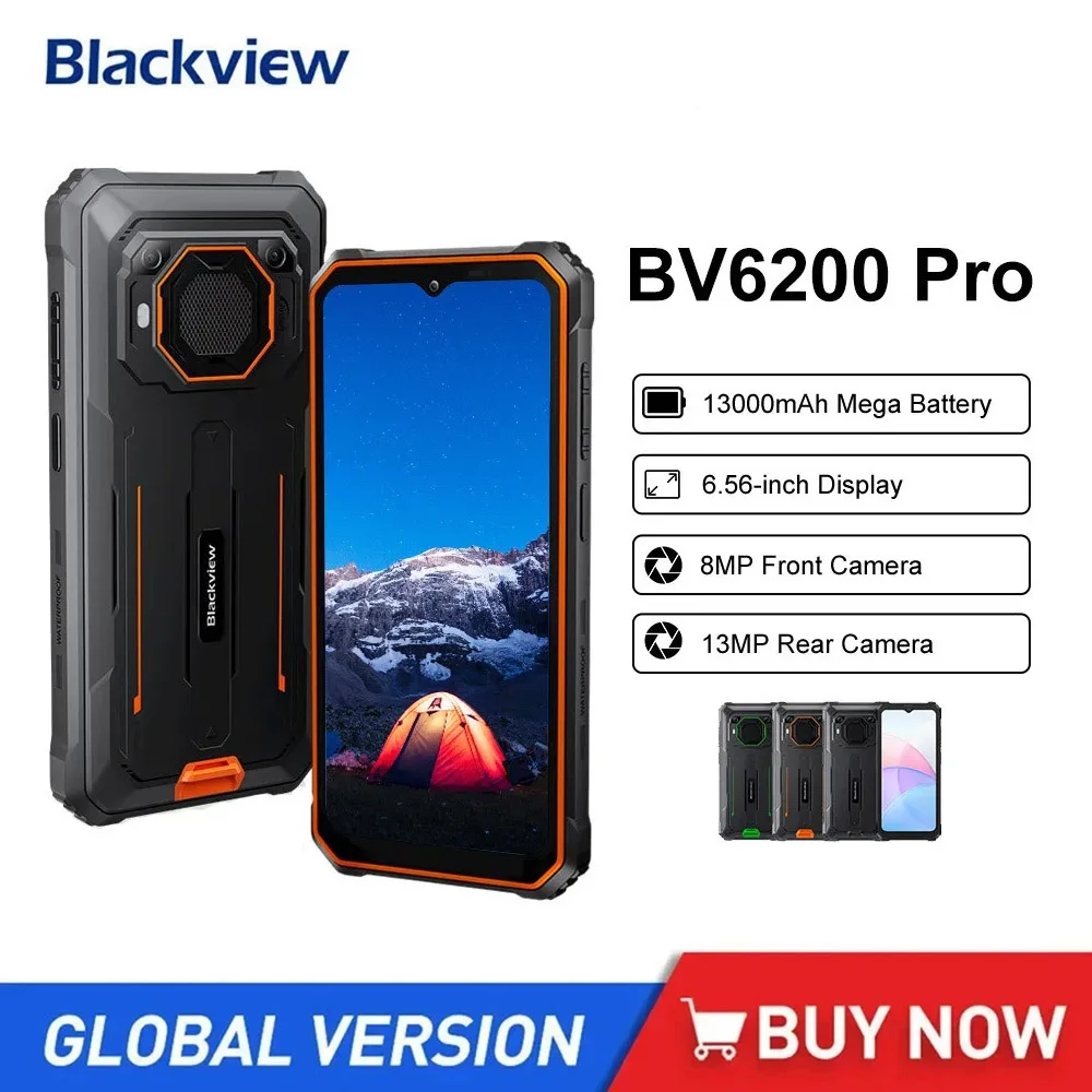 Blackview BV6200 Pro Rugged Smartphones Waterproof 4GB/6GB+128GB 6.56Inch 13000mAh Android 13 Mobile Phone 18W Fast Charge NFC