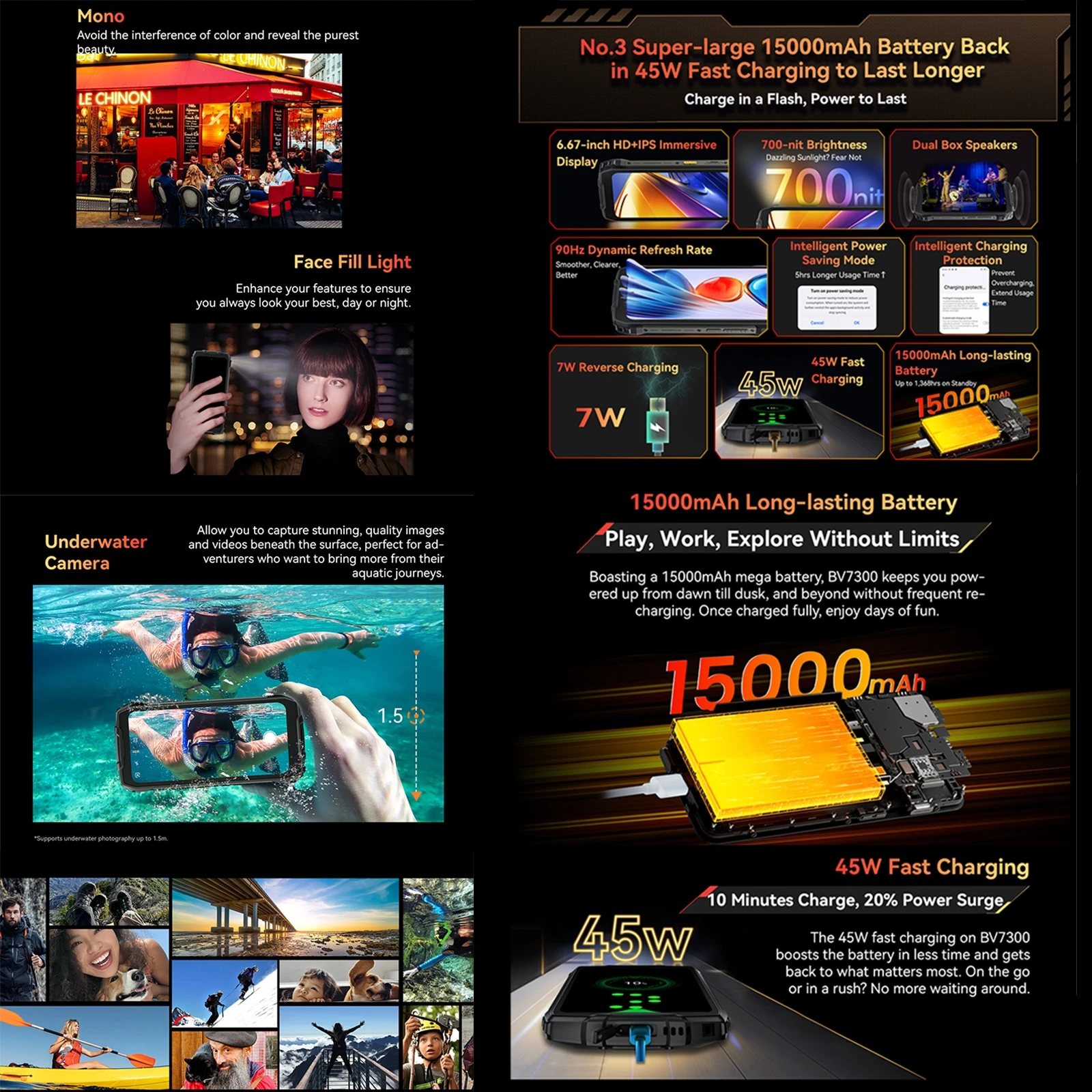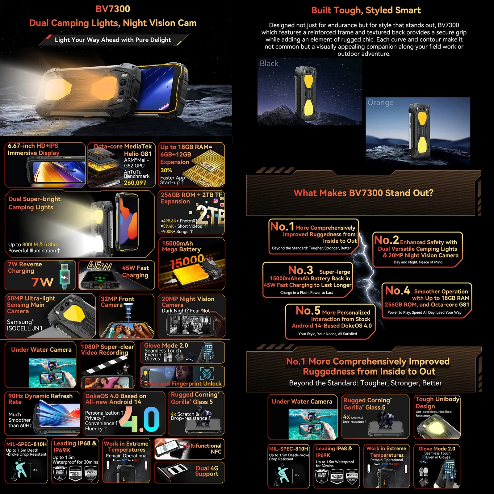 14. Protection: IP68/IP69K/MIL-STD-810H Waterproof Dustproof Shockproof