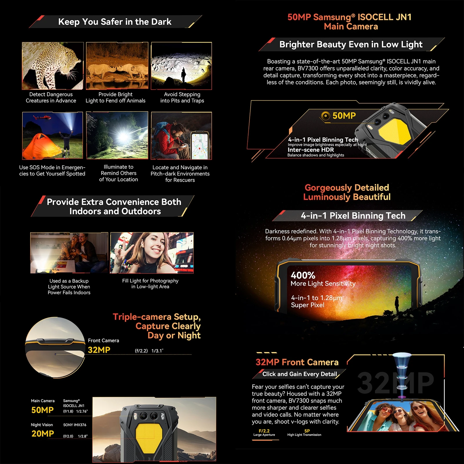 1. Rear Cameras: 50MP S5KJN1SQ03, AF, F1.8 + 20MP IMX376, FF, F1.8