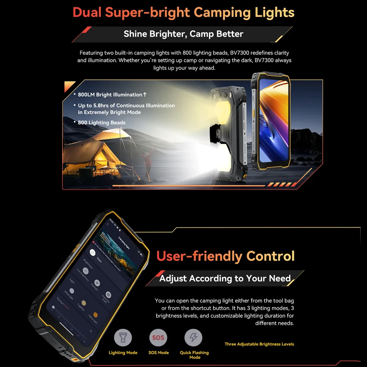 Blackview BV7300 Rugged Smartphone 18GB(6+12) 256GB, 6.67” ,Helio G81 Octa Core,15000mAh,Dual Camping Lights,NFC Android 14 Phone