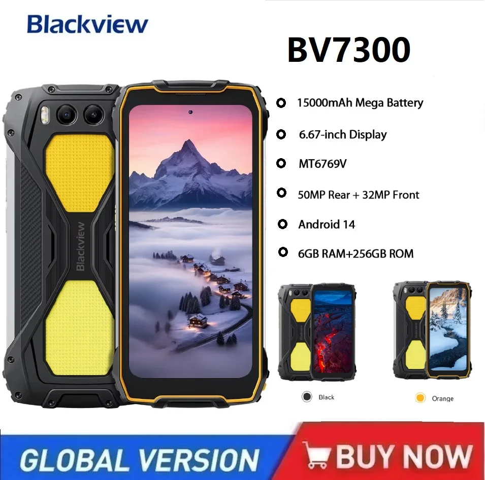Blackview BV7300 Rugged Smartphone Android 14 6GB RAM+ 256GB ROM,6.67” HD+IPS MT6769V ,7680mAh 45W Fast Charge NFC Mobile Phone