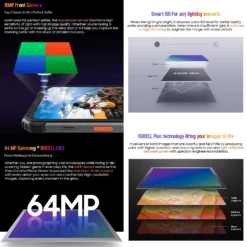 4. 64.0MP S5KGW3SP13-FGX9 main rear camera with flash light, good for taking clear pictures. Thermal sensor and 5.0MP GC5035-WC1X0 camera, assint with thermal imaging.