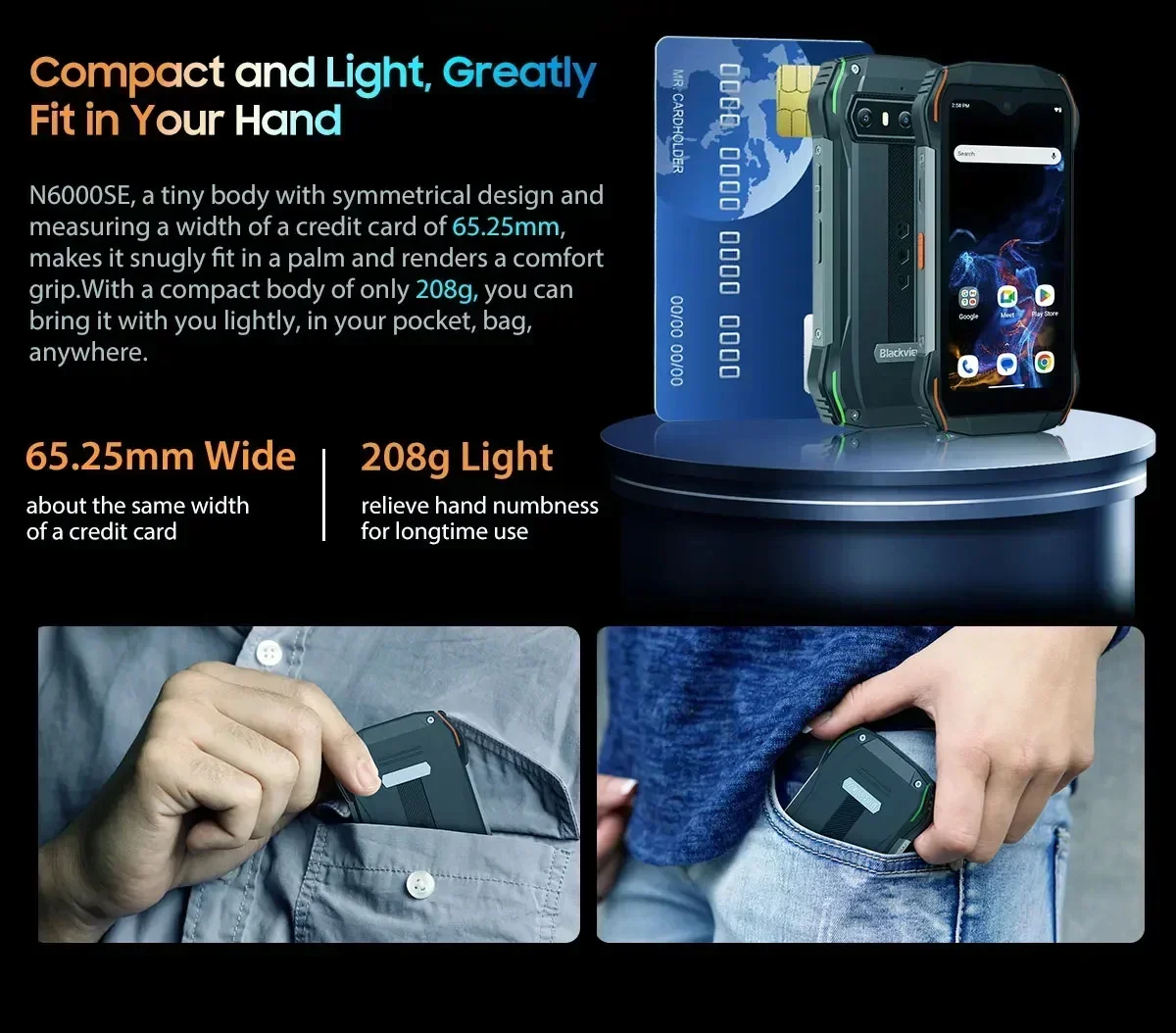 Blackview N6000SE 4G Rugged Smartphone 4.3Inch 4GB RAM 128GB ROM Mobile Phones 13MP Camera 3700mAh Android 13 Mini Cellphone NFC