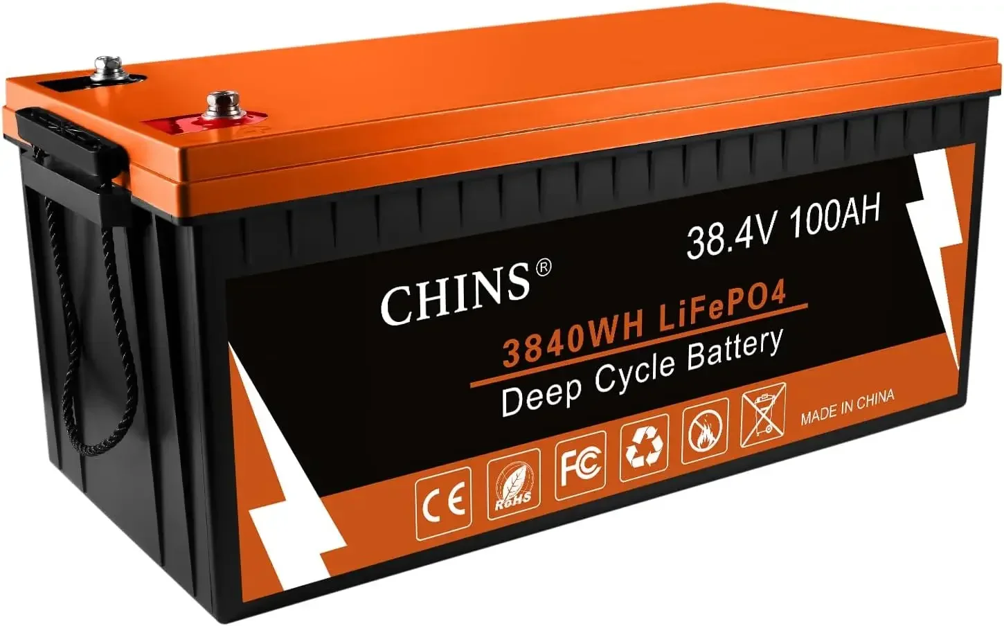 - 【Lithium Iron Technology】: CHINS deep cycle lithium-ion battery has higher energy density, more stable performance and greater power. LiFepo4 battery will not burn when overcharged, overdischarged, overcurrent or short circuit, and can withstand high temperatures without decomposition. It can support fast charging and solar panel charging. Our LiFepo4 batteryis a green battery, it does not contain any heavy metals and rare metals and is more environmentally friendly.