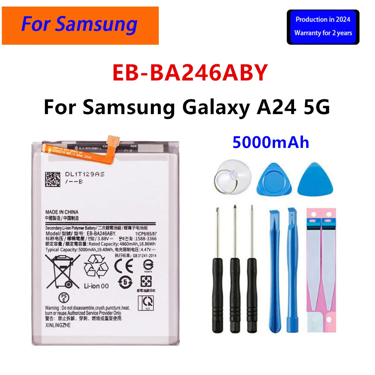 Brand New EB-BA156ABY EB-BA246ABY Battery For Samsung Galaxy A15 4G A155F / A15 5G A156B A24 5G Mobile Phone Batteries+Tools – 509
