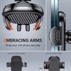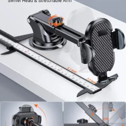 【UPGRADE Long Retractable Arm】Keep your cell phone in sight all the time and ready for hands-free calls, GPS navigation, etc.The car phone holder featuring long retractable arm and a ball swivel for 360-degree rotation, your phone can be oriented at any angle to enjoy a more relaxed and safe drive.
