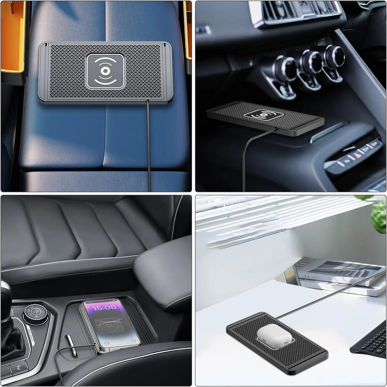 【DIY available wireless charger pad for car】 – wireless car charger pad has been designed to be DIY available . Two side of the charging pad can be trimmed to change the charger pad’s size . No need to worry that the wireless charging pad don’t fix your car.
