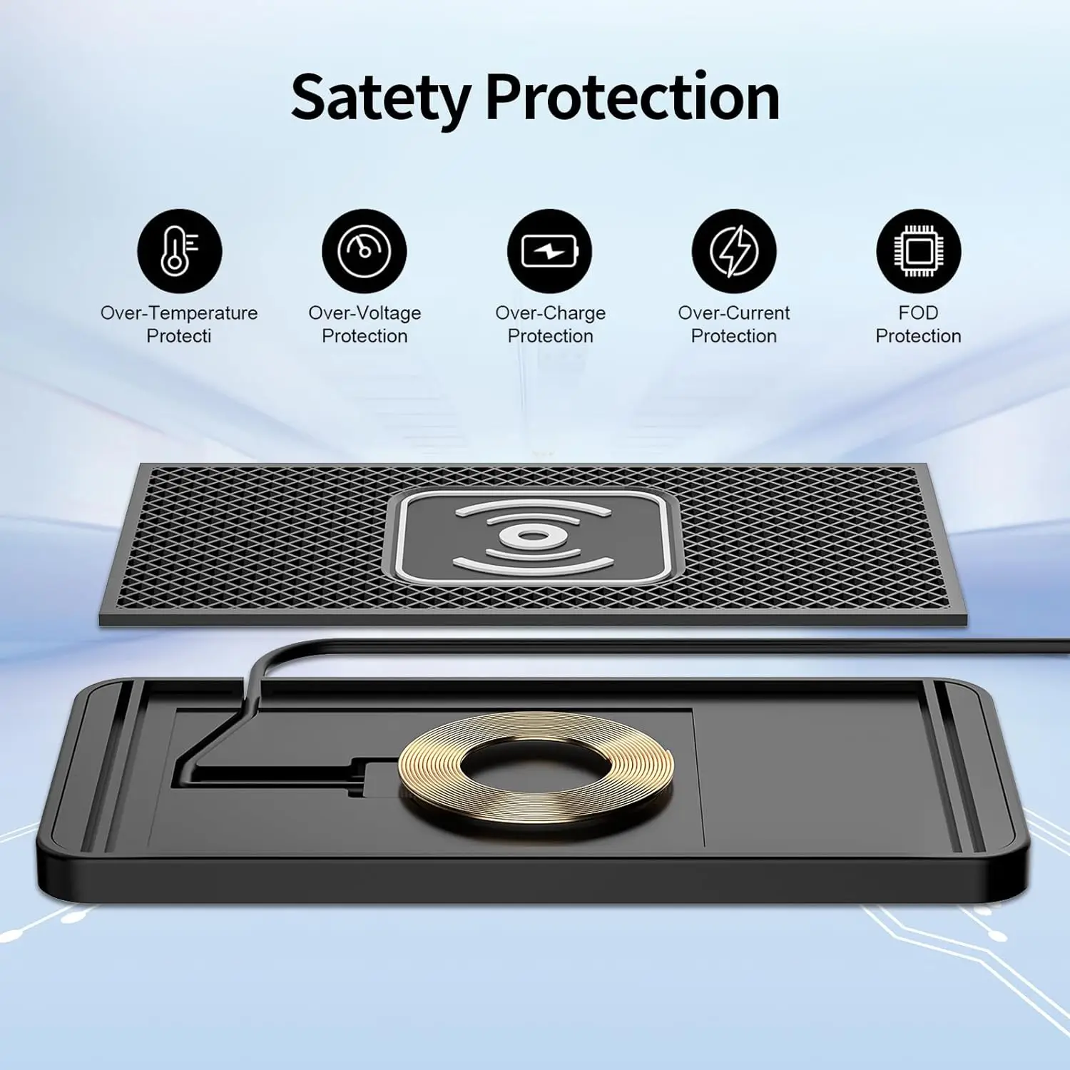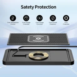 【New design wireless charger pad to avoid over heat】- wireless car charger has been design to separate the charging coil from the circuit board which might get some heating when the pad coil is supply wireless charging. As the wireless charging coil is inside charging pad and the circuit board is outside the pad, they are far from each other. when you are charging on the pad (over the charging coil), the circuit board will not get heat, so do the whole charger pad and your phone.