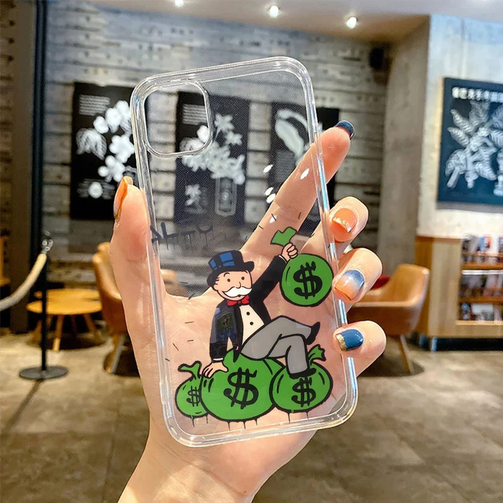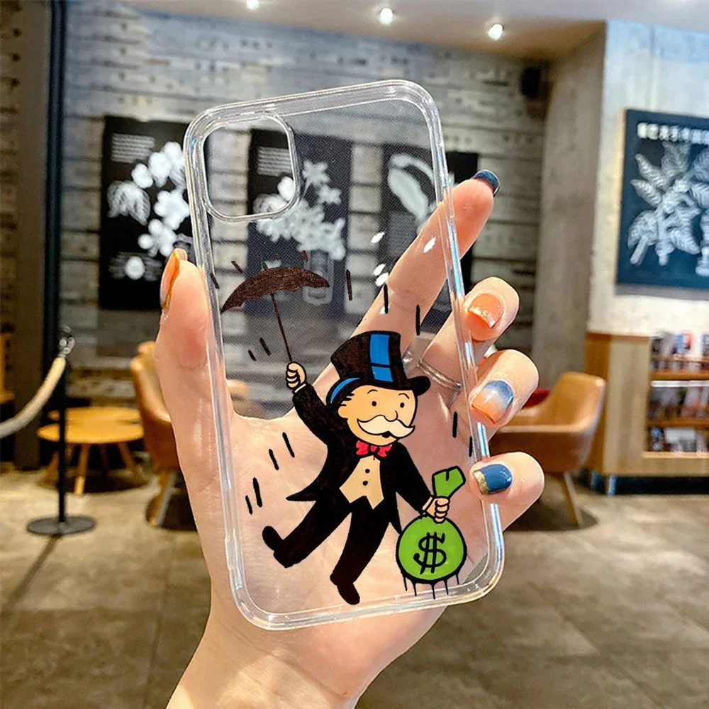 Cartoon Luxury Dollar MonopolyS Clear Transparent phone case for iPhone 11 12 13 14 15 mini pro XS MAX 8 7 6 6S Plus X SE XR –