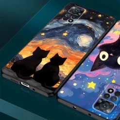 Case for Xiaomi Redmi Note 10 11S 9S 9T 8T 11 Pro 13 Pro 10S 12S 12 9 8 7 11 12 Pro Starry Sky Cat Matte Matte Cover Silicone –