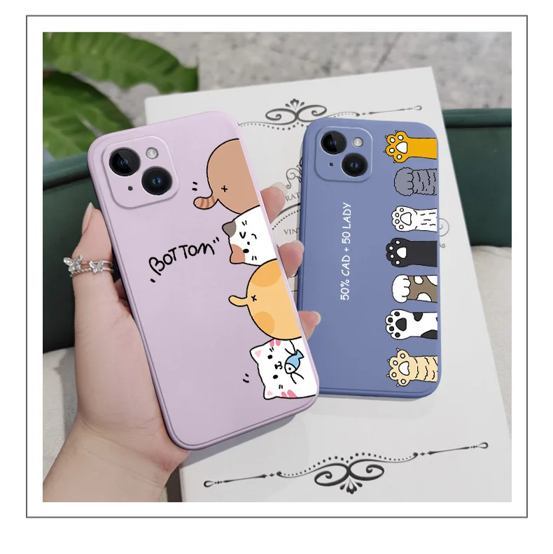 Cat Litter Phone Case For iPhone 16 15 14 13 12 11 Plus Pro Max Mini X XR XS Plus Liquid Silicone Cover –