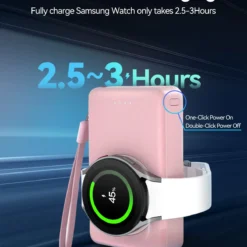 Portable wireless power bank for samsung watch charger built-in 4000 mAh lithium ion Polymer battery, make your life more convenient. The hang rope design charger. you can hook it to your backpack or carry it in your bag or pocket anywhere. it’s a perfect choice for your Samsung Galaxy watch accessories.