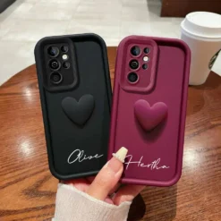 Customized Personalized Name 3D Love Heart Case For Samsung Galaxy S24 S23 S22 S21 S20 Ultra Plus Luxury Soft Cover S23 S21 FE