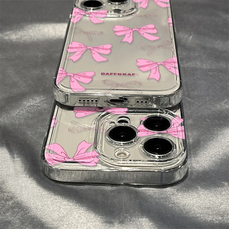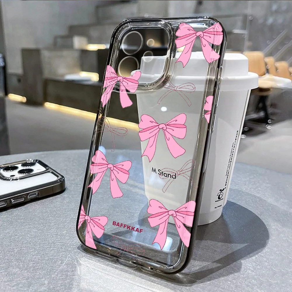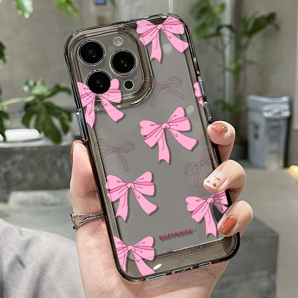 Cute Pink Bow Phone Case For iPhone 15 Case iPhone 11 13 12 14 16 Pro Max XR XS X 7 8 Plus SE 2020 Shockproof Soft Bowknot Cover – 509