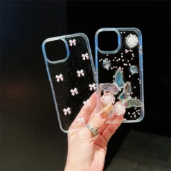 Cute Pink Bowknot Phone Case For iPhone 16 15 14 13 Pro Max Pro Korea Girl Epoxy Shell Clear Soft Cover –