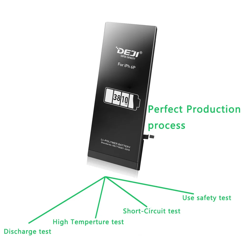 DEJI for iphone 6plus battery 3810mAh VS Original battery 2915mAh. Higher than 895mAh Capacity.