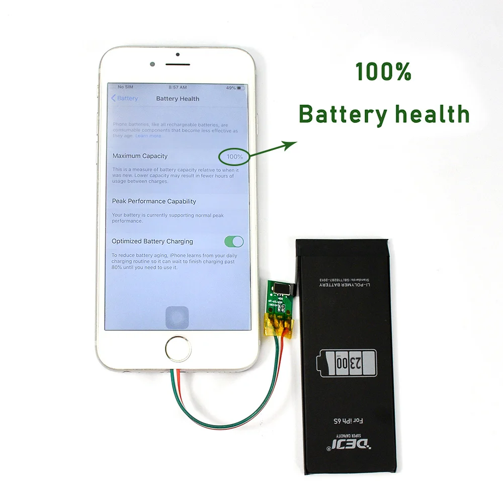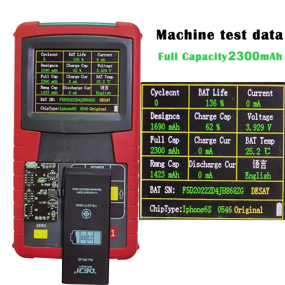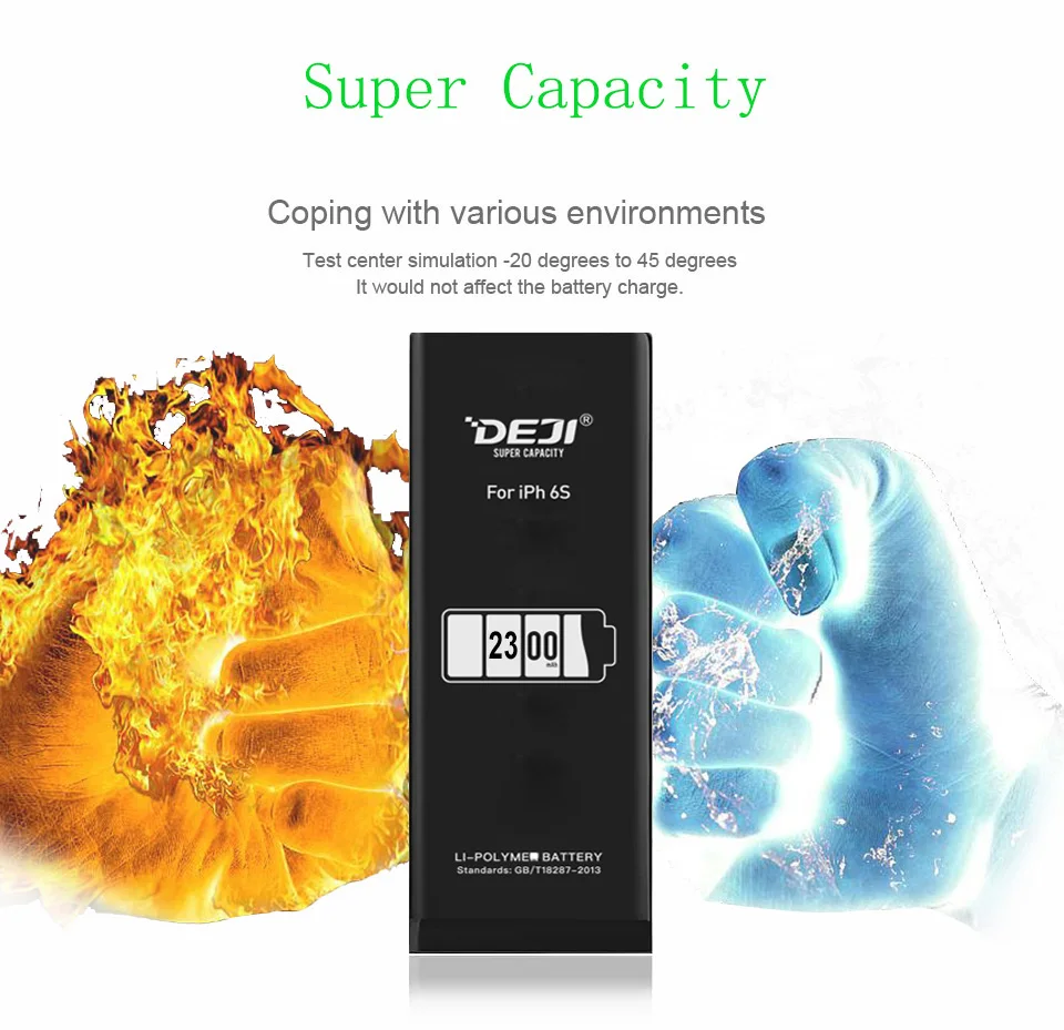 DEJI for iphone 6s battery 2300mAh VS Original battery 1715mAh. Higher than 585mAh Capacity.