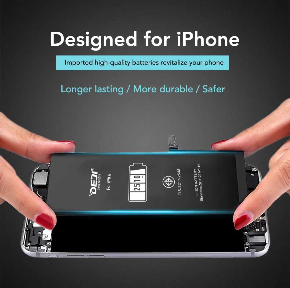 DEJI for iphone 6 battery 2510mAh VS Original battery 1810mAh. Higher than 700mAh Capacity.