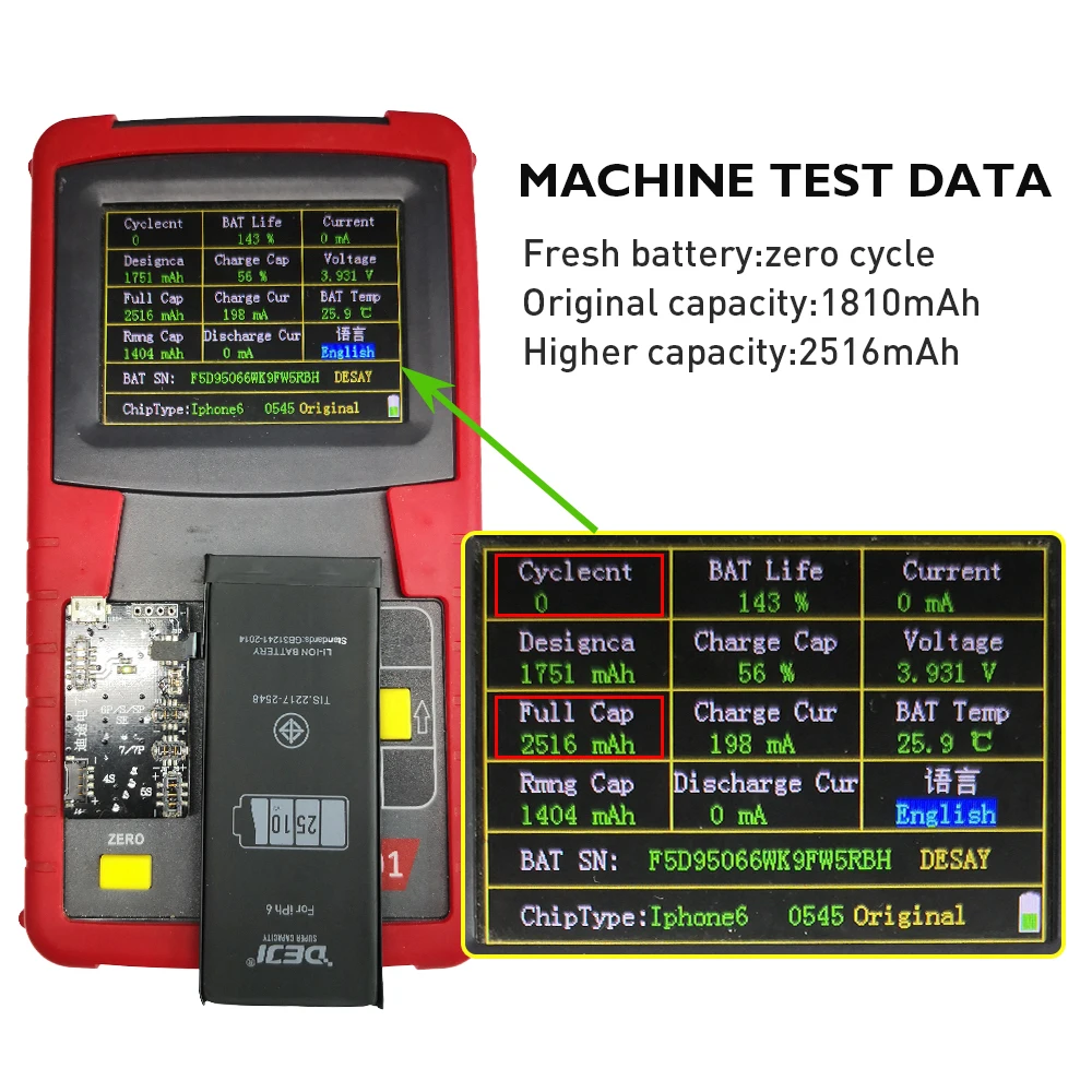 DEJI for iphone 6splus battery 3810mAh VS Original battery 2750mAh. Higher than 1060 Capacity.