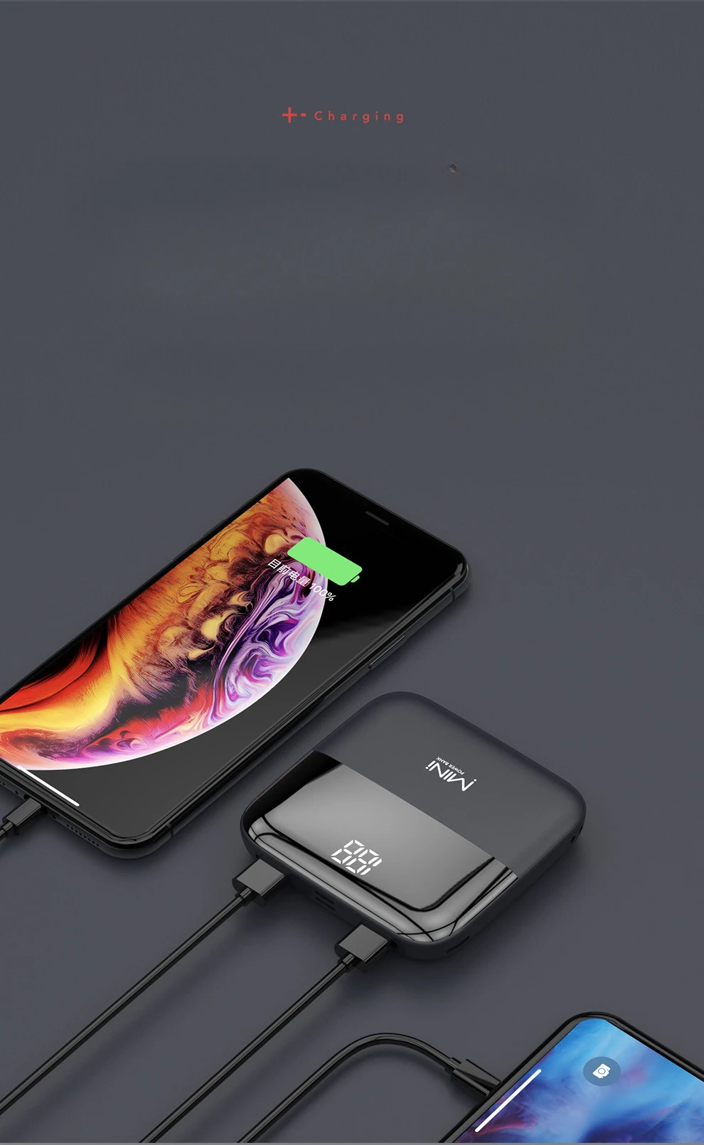 Digital display power bank, fast charging mini, light, compact and portable BCAK mobile power supply 20000mAh large capacity