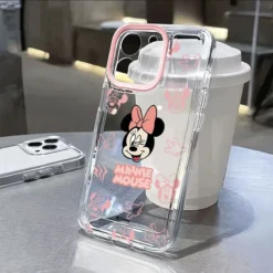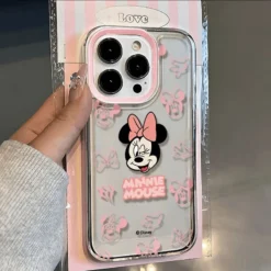 Disney Cute Minnie Pink Bow Phone Case For iPhone 16 15 14 13 12 11 Pro Max XR XS 7 8 Plus Y2K Kawaii Soft Silicone Clear Cover
