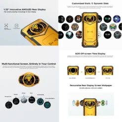 25. Features: Al Functions, Dynamic Dials, Rear Display Off-screen Time, The Thinnest Rugged Phone with 10100mAh Battery, Multi-function Rear Display