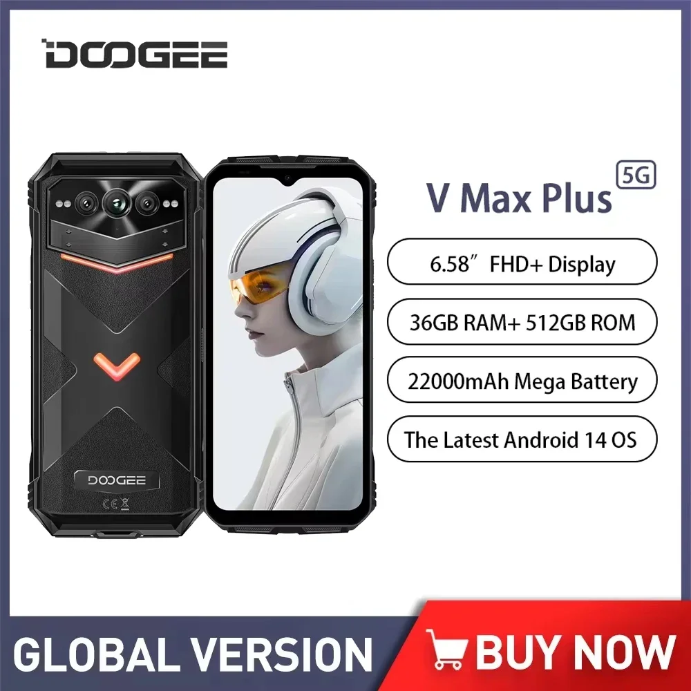 DOOGEE V Max Plus 5G Rugged Phone 22000mAh 512GB ROM 36GB RAM Smartphone Android 14 200MP 33W 6.58 Inch Octa Core Cellphone NFC