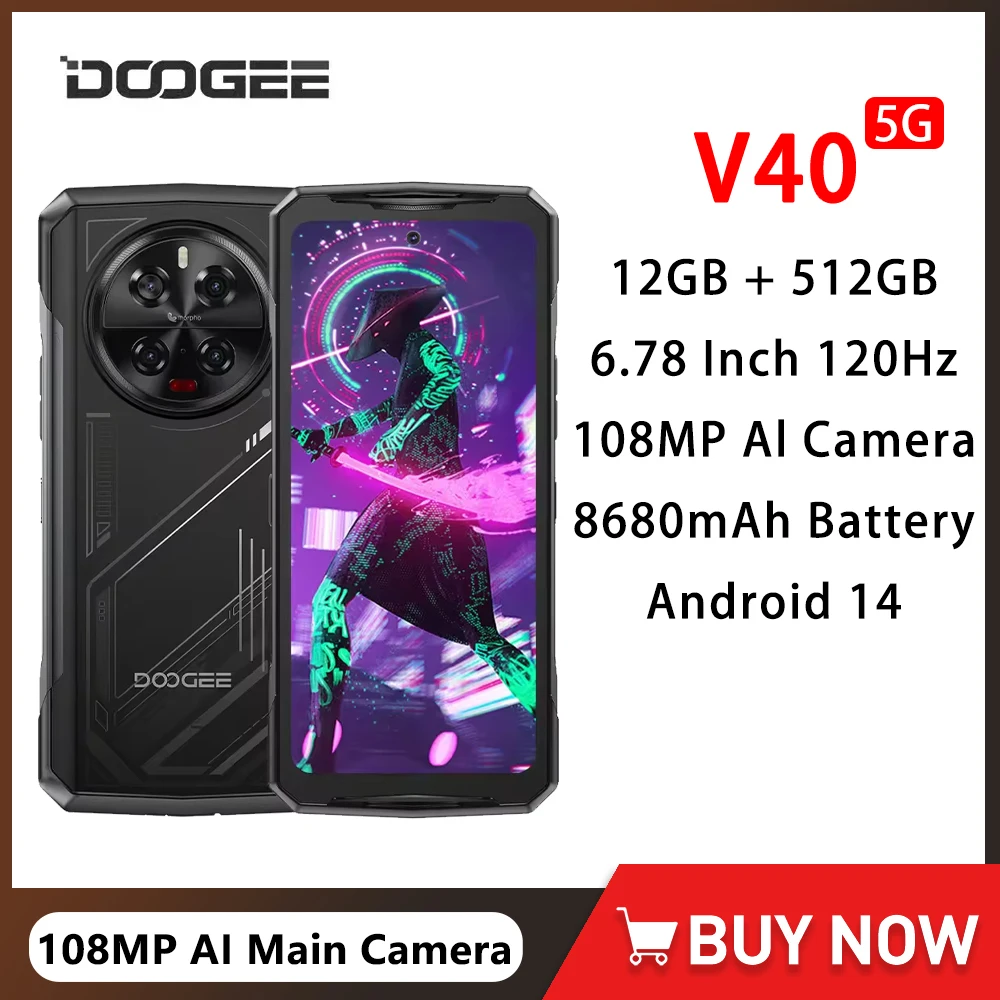 DOOGEE V40 5G Rugged Gaming Smartphone Android 14 12GB 512GB 108MP Al Camera 8680mAh 6.78 Inch FHD 120Hz Display Cellphone NFC