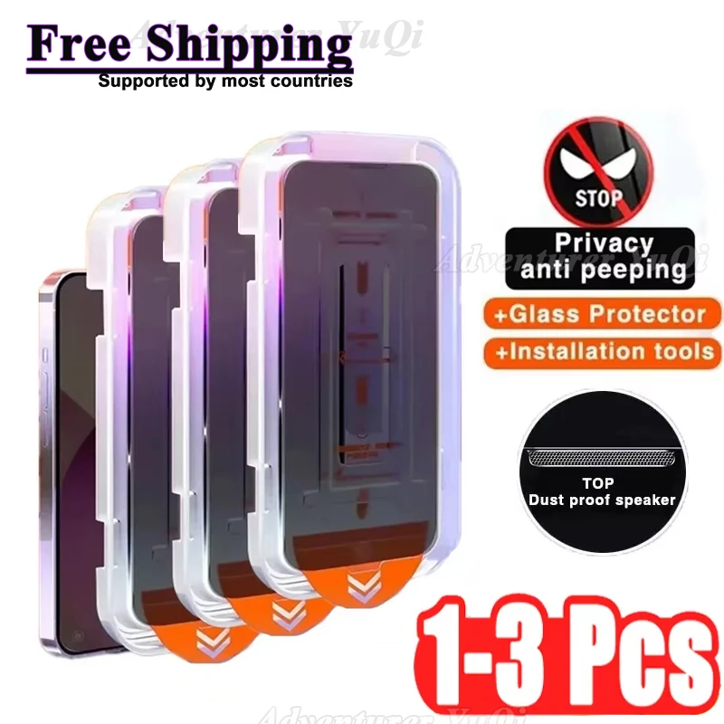 Dust free Installation Privacy Screen Protector For iPhone 16 13 14 15 11 12 Pro Max Plus X XR XS 8K Tempered Glass Easy Apply Anti Spy Scratch Peep 9H Auto Dust Removal