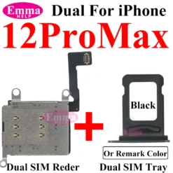 EmmaHelp 1set Dual Sim Card Reader Connector Flex Cable + Tray Slot Holder Adapter for iPhone 11 12 13 14 15 Pro Max XR XSMax – 509